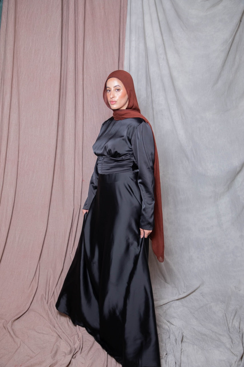 Available in an array of classic shades, the Flowy Satin Pleated Waist Dress allows you to express your personal style effortlessly. Whether you’re twirling on the dance floor or enjoying a your special day, this dress promises to keep you comfortable and stylish all night long. Experience the perfect blend of sophistication and versatility with our Satin Dress—your go-to choice for effortless elegance. Order yours today!
